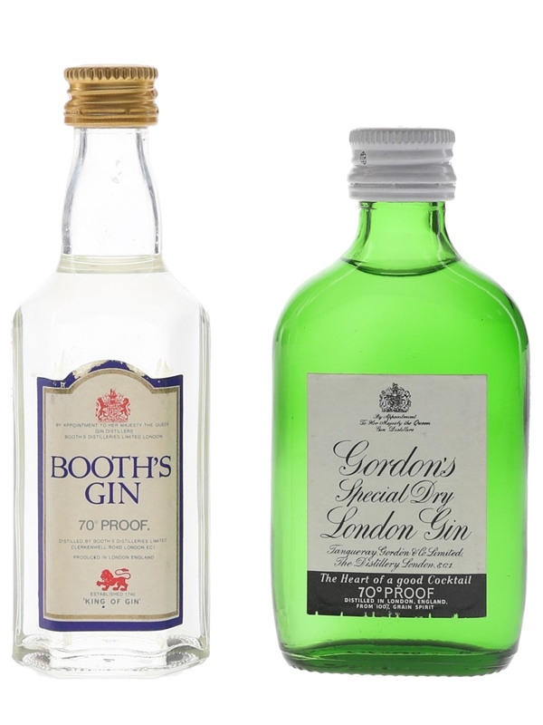 Booth's & Gordon's Gin Bottled 1970s 2 x 5cl / 40%
