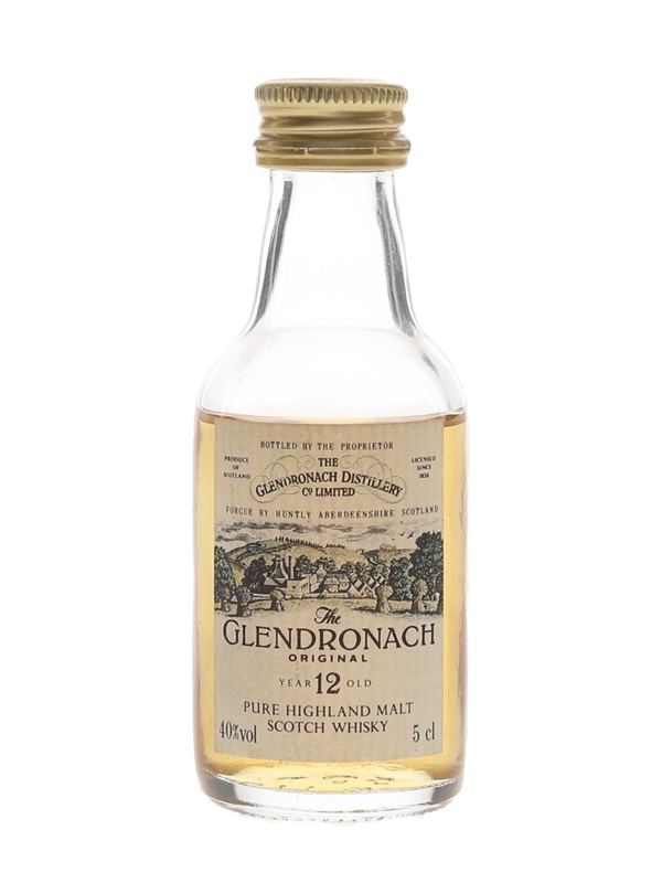 A miniature bottle of The Glendronach 12 Year Old Original Pure Highland Malt Scotch Whisky. We estimate this was bottled in the 1980s.