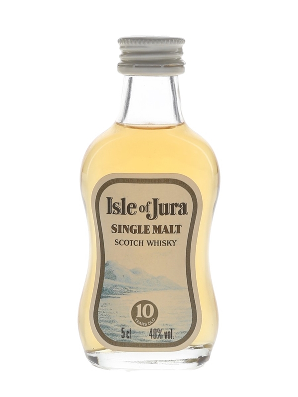 A miniature bottle of Isle Of Jura 10 Year Old Single Malt Scotch Whisky. We estimate this was bottled in the 1990s.
