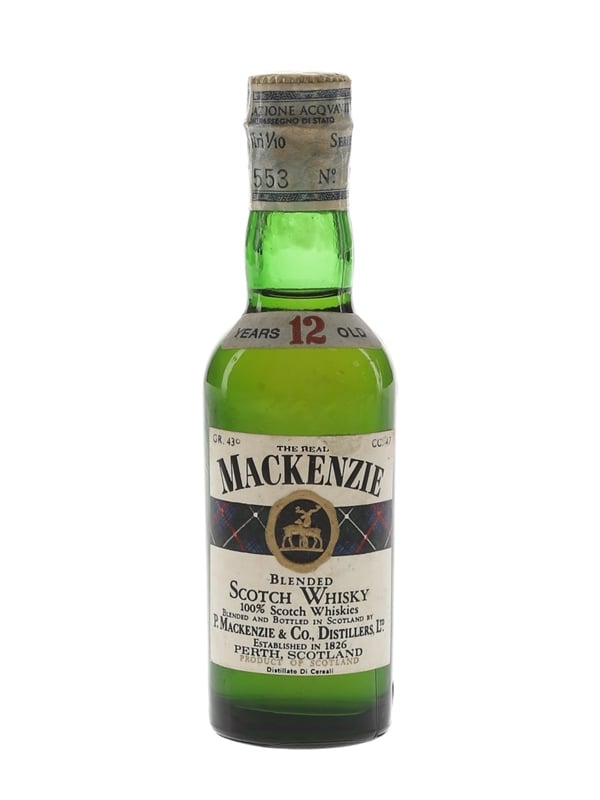 A miniature bottle of The Real Mackenzie 12 Year Old Blended Scotch Whisky. This was bottled for the Italian market, we estimate in the 1970s.