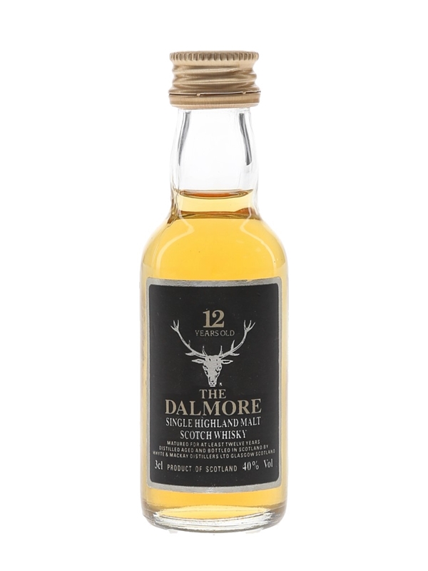 A miniature bottle of The Dalmore 12 Year Old Single Highland Malt Scotch Whisky, distilled, aged and bottled in Scotland by Whyte & Mackay Distillers Ltd. We estimate this was bottled in the 1990s.