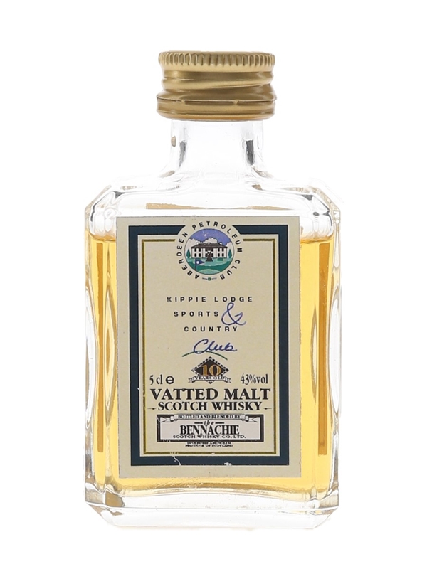A miniature bottle of The Bennachie 10 Year Old Vatted Malt Scotch Whisky.