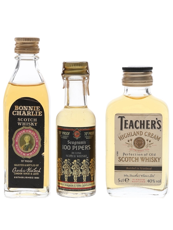 Bonnie Charlie, Seagram's 100 Pipers & Teacher's Bottled 1970s & 1980s 3 x 3cl-5cl / 40%