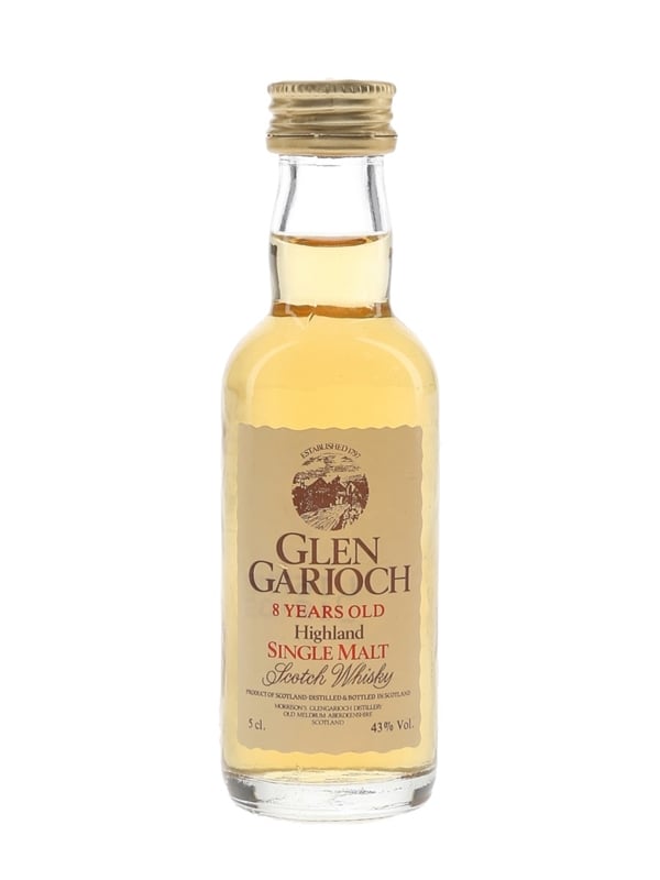 A miniature bottle of Glen Garioch 8 Year Old Single Malt Scotch Whisky. We estimate this was bottled in the 1980s.