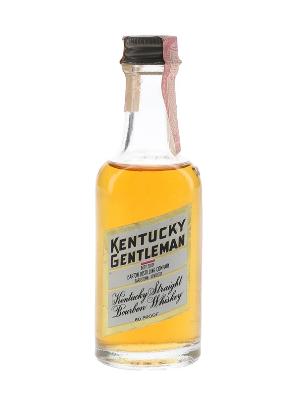 A miniature bottle of Kentucky Gentleman, a Kentucky Straight Bourbon Whiskey distilled and bottled by Barton Distilling Company. The bottle code indicates this bottle was made in 1980.