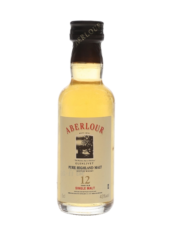 A miniature bottle of Aberlour Glenlivet 12 Year Old Single Malt Scotch Whisky. We estimate this was bottled in the 1990s.
