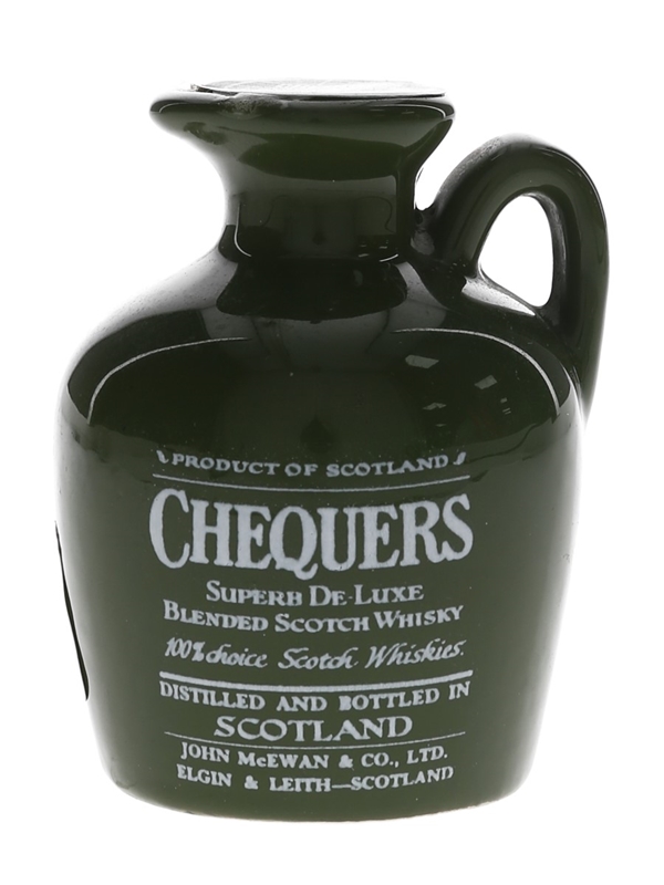 A miniature bottles of Chequers 12 Year Old Superb De Luxe Blended Scotch Whisky distilled and bottled by John McEwan & Co. Ltd.