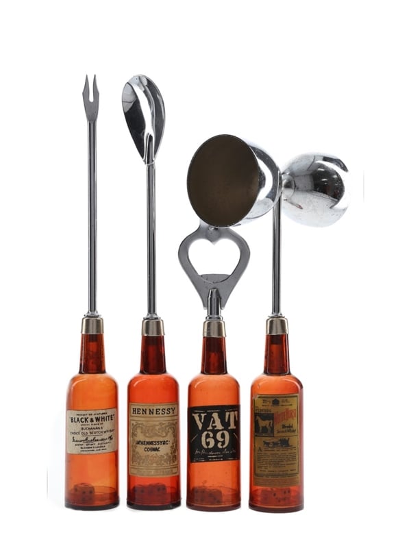 Assorted Bar Equipment Black & White, Hennessy, VAT 69, White Horse