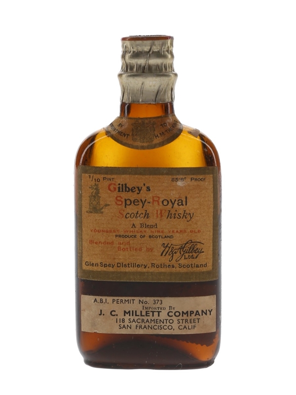 Gilbey's Spey Royal 9 Year Old Bottled 1930s - J C Millet Company 4.7cl