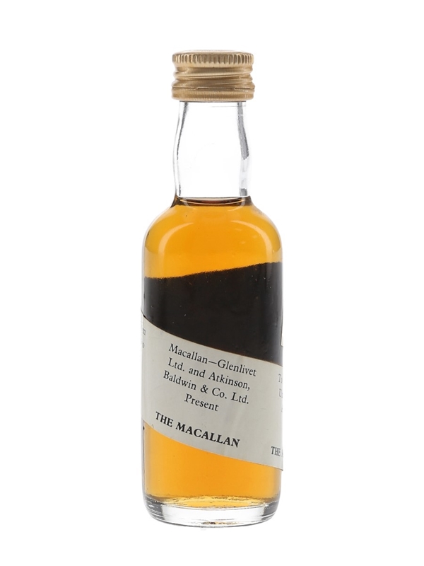 A rare bottle of The Macallan, bottled sometime in the late 1970s for trade customers to announce Atkinson, Baldwin & Co. Ltd, as the new distributor for The Macallan.