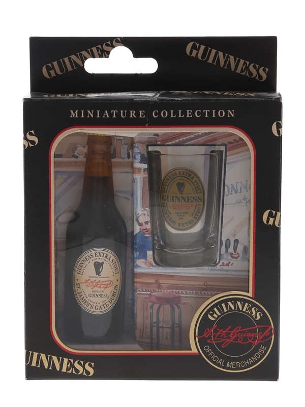 The Guinness Miniature Collection contains a tiny Guinness Extra Stout, which was filled under license by Lilliput Bottlers of Galway, and a small glass.