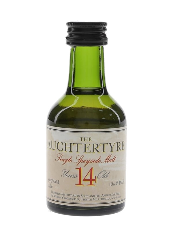 A miniature bottle of Dailuaine 14 Year Old The Auchtertyre Single Speyside Malt Whisky. This was distilled on 15 November 1979 and bottled at 59.7% ABV by The Whisky Connoisseur as part of The Robert Burns Collection.
