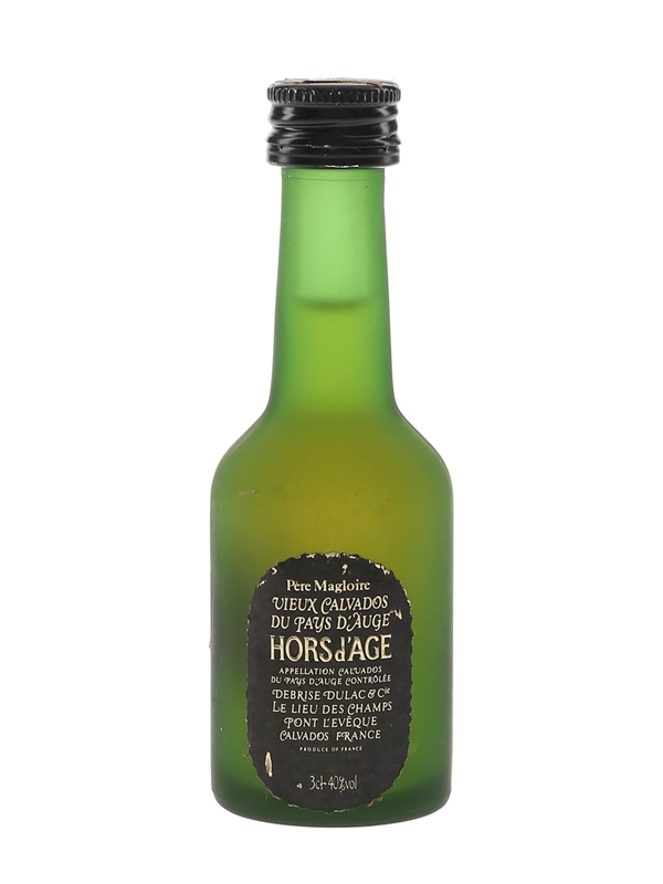 A miniature bottle of Pere Magloire Vieux Calvados Hors d'Age from the Pays d'Auge region of Normandy.