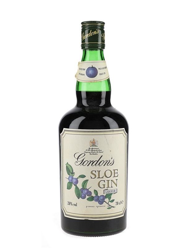 An old presentation bottle of Gordon's Sloe Gin made of wild sloe berries.