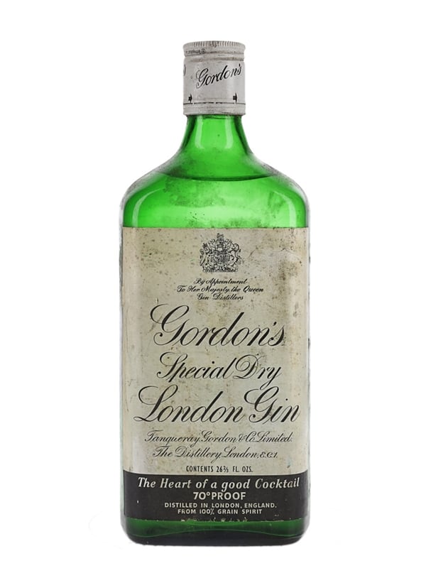 A bottle of Gordon's Special Dry London Gin, distilled and bottled by Tanqueray, Gordon & Co. Limited, The Distillery, London. We estimate this was bottled in the 1970s.