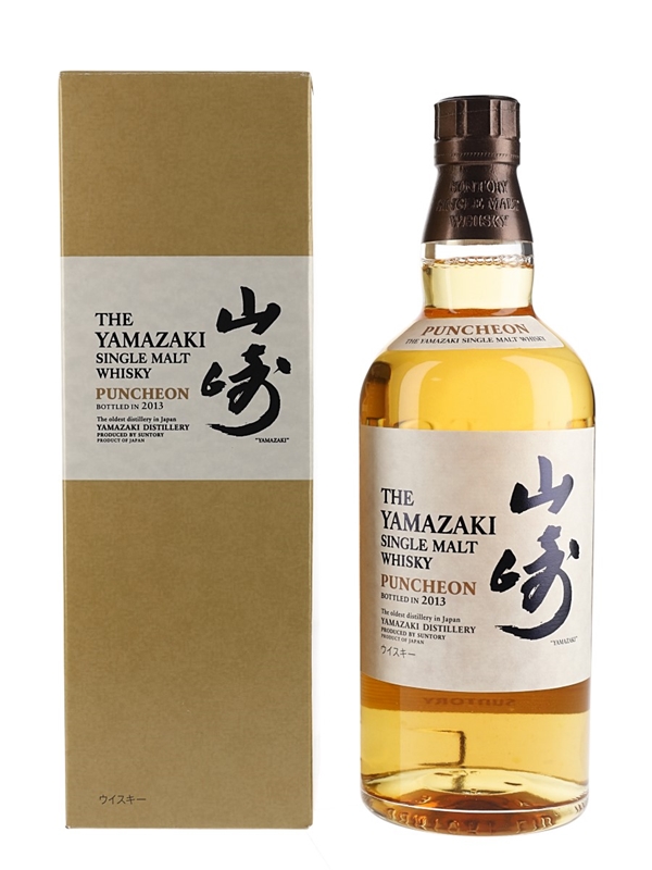 A bottle of Yamazaki Puncheon Single Malt Whisky produced by Suntory in Japan. This was matured in a 480 litre puncheon cask and bottled in 2013. It was imported to the UK by Morrison Bowmore Distillers Ltd.