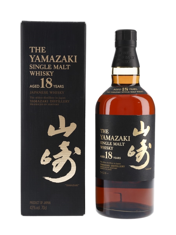 A bottle of The Yamazaki 18 Year Old Single Malt Japanese Whisky, imported to the UK by Morrison Bowmore Distillers Ltd.