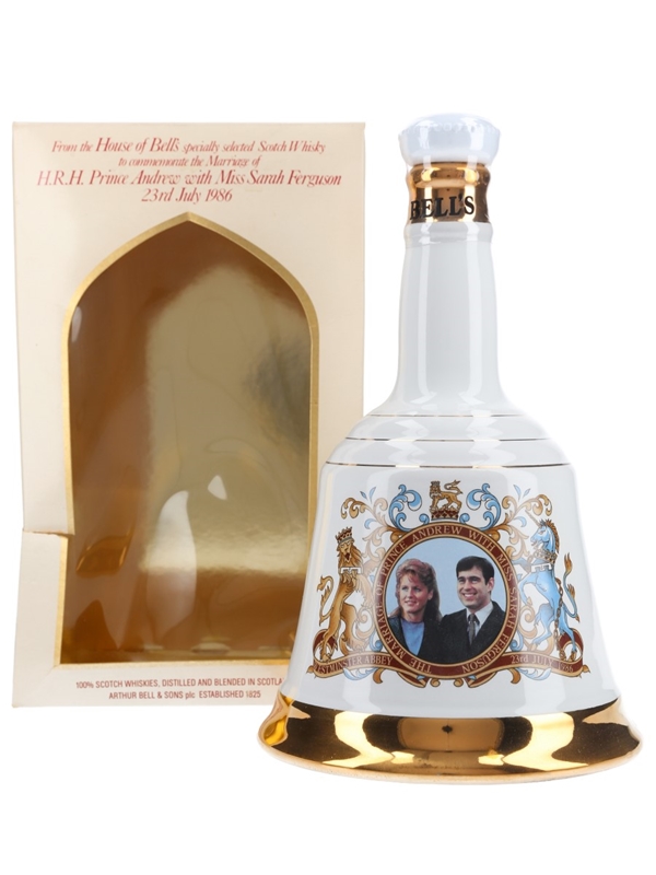A ceramic decanter Bell's Scotch Whisky, released in 1986 to celebrate the marriage of Prince Andrew and Sarah Ferguson.