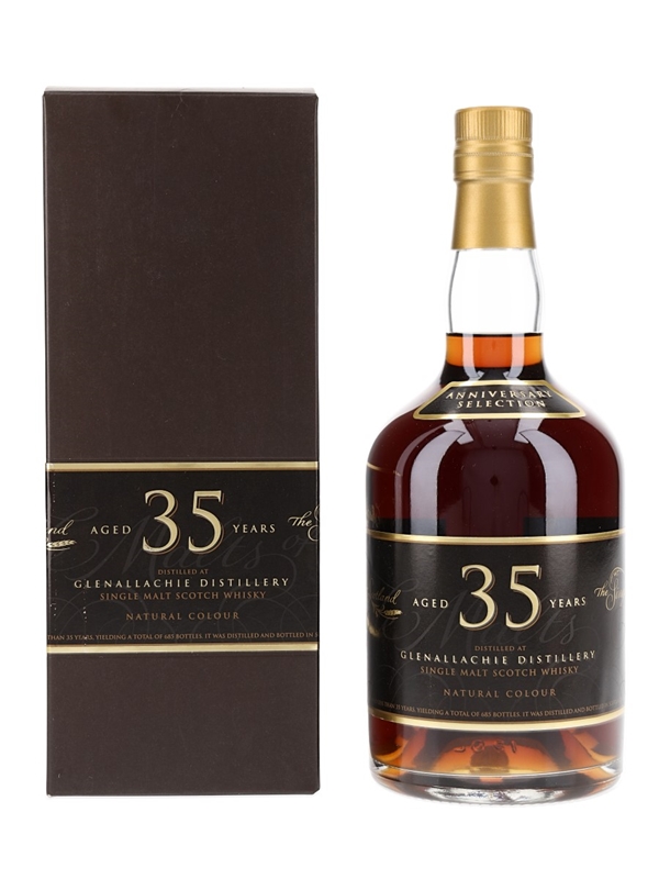 A bottle of Glenallachie 35 Year Old from The Single Malts of Scotland Anniversary Selection. This was matured in first fill sherry butts and bottled in 2010 by Speciality Drinks Ltd.