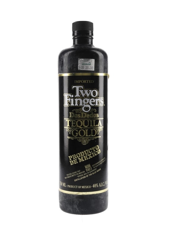 A bottle of Two Fingers Tequila Gold.