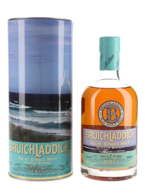 A bottle of Bruichladdich Waves 7 Year Old Islay Single Malt Scotch Whisky. The bottling code indicates this was bottled on 10 October 2005.