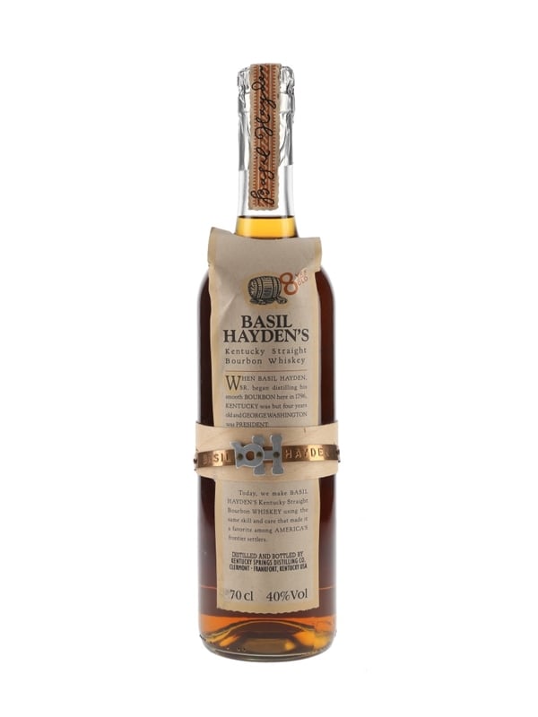 A bottle of Basil Hayden's 8 Year Old Kentucky Straight Bourbon Whiskey, distilled and bottled by Kentucky Springs Distilling Co.