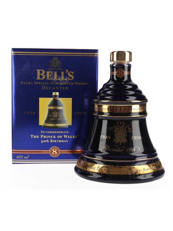 A ceramic decanter of Bell's 8 Year Old Extra Special Old Scotch Whisky, released to celebrate The Prince of Wales' 50th birthday on 14 November 1998.