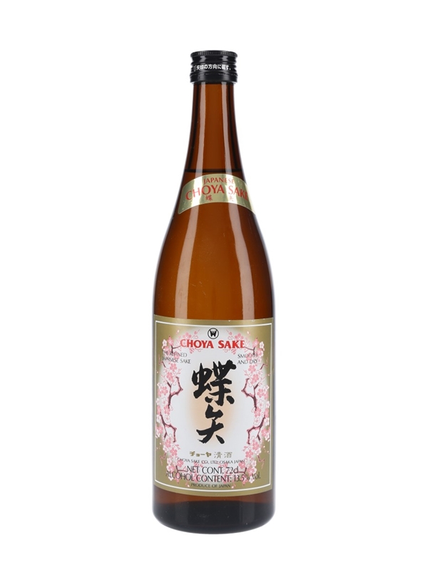 A bottle of Japanese Choya Sake produced by Choya Sake Co. Ltd., Osaka, Japan.