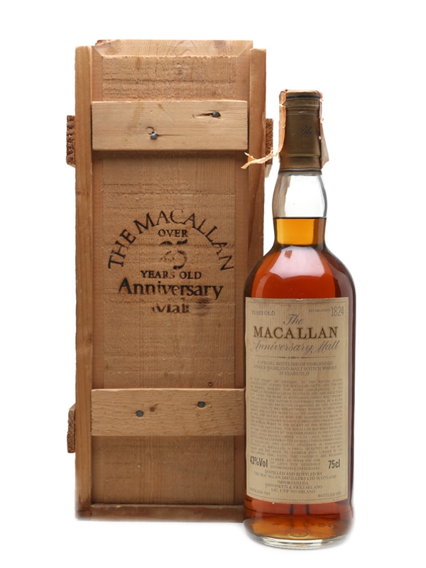 This Macallan was distilled in 1965, matured in sherry casks for more than 25 years and bottled in 1991 as part of the Anniversary Malt series. This bottle was imported into Italy by Giovinetti.