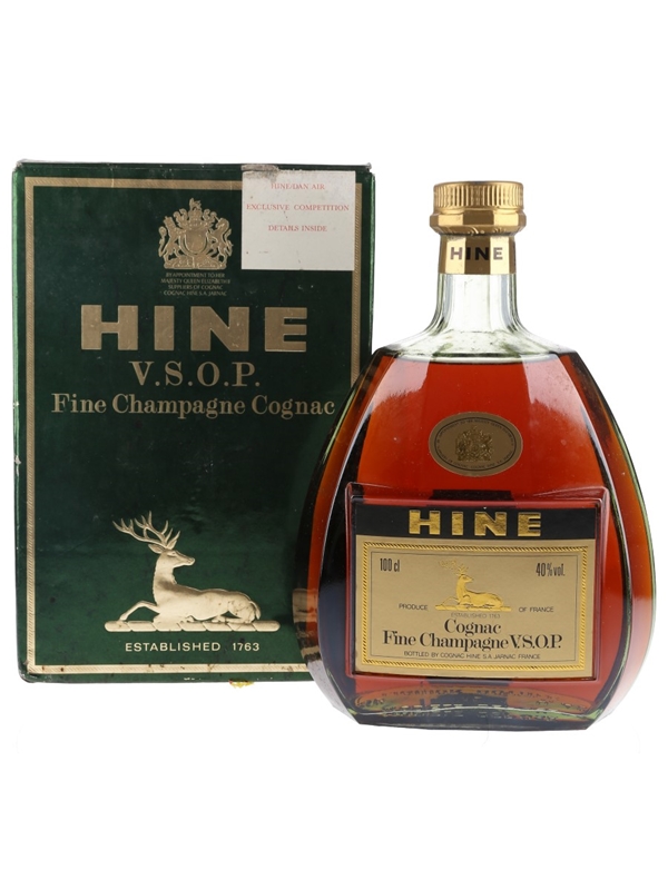 A bottle of Hine VSOP Vieille Fine Champagne Cognac.