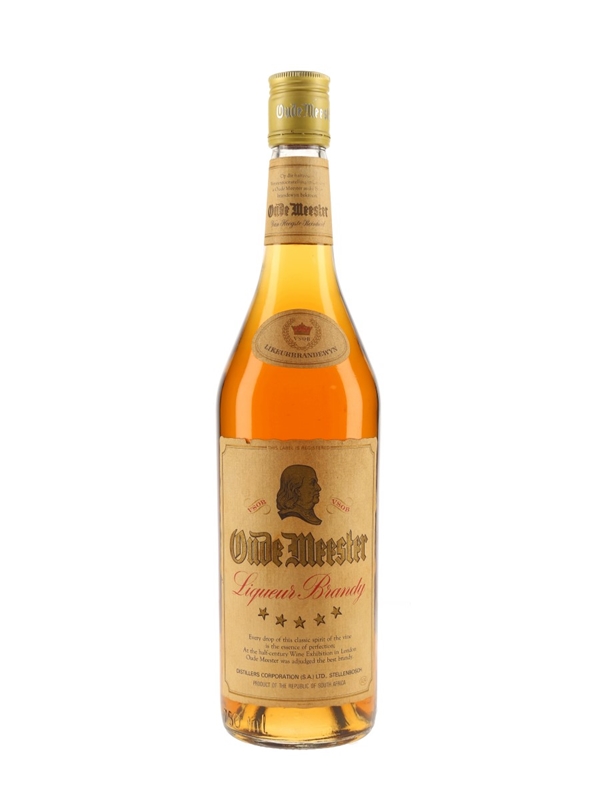 A bottle of Oude Meester VSOB 5 Star Liqueur Brandy produced in South Africa.