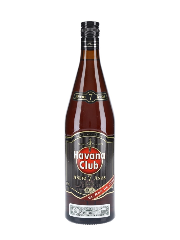 A litre bottle of Havana Club Añejo 7 Year Old rum produced in Cuba. We estimate this was bottled in the 1990s.