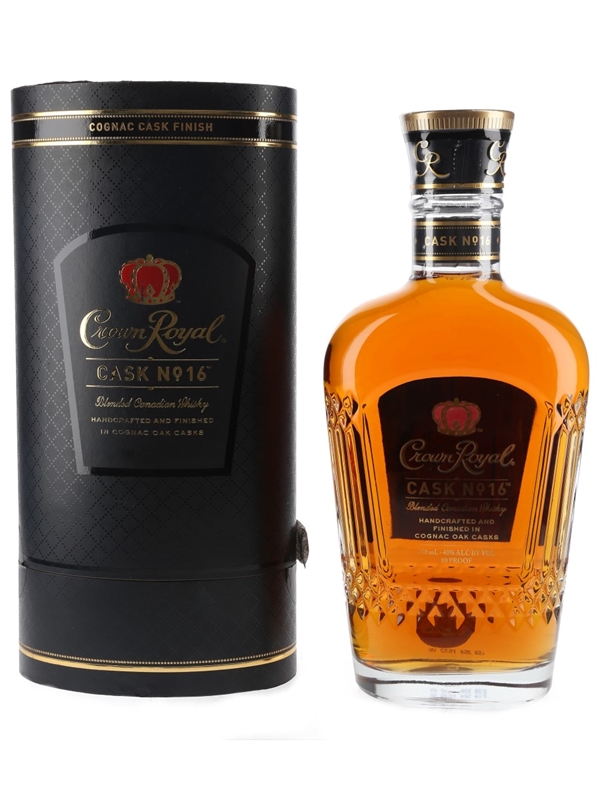A bottle of Crown Royal Cask No.16 Blended Canadian Whisky which spent its final maturation period in Cognac casks.