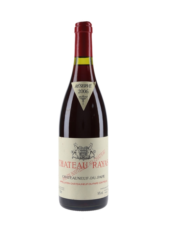 A bottle of Chateau Rayas Chateauneuf du Pape 2006 Reserve.