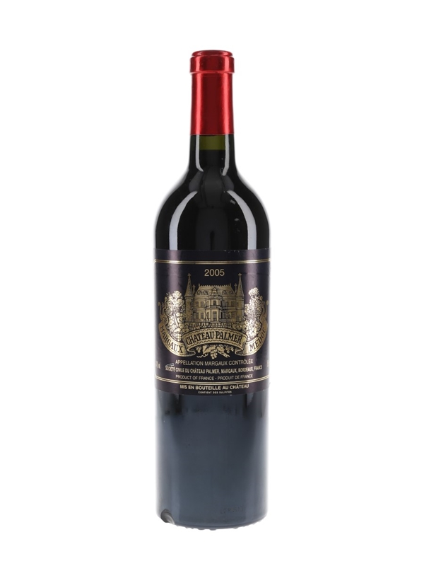 A bottle of 2005 Château Palmer from the Margaux appellation of Bordeaux. Palmer is widely accepted as the finest producer in the commune after Château Margaux itself.