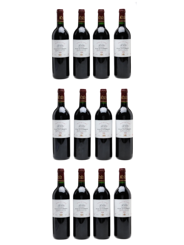 This lot contains twelve bottles of 1994 Château Haut-Corbin Grand Cru.