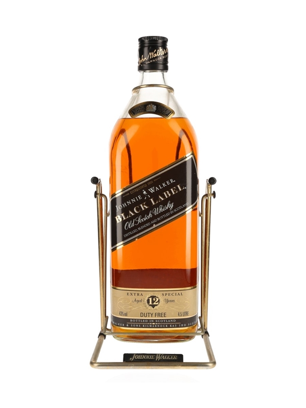 A 4.5 litre bottle of Johnnie Walker Black Label 12 Year Old presented in a cradle.