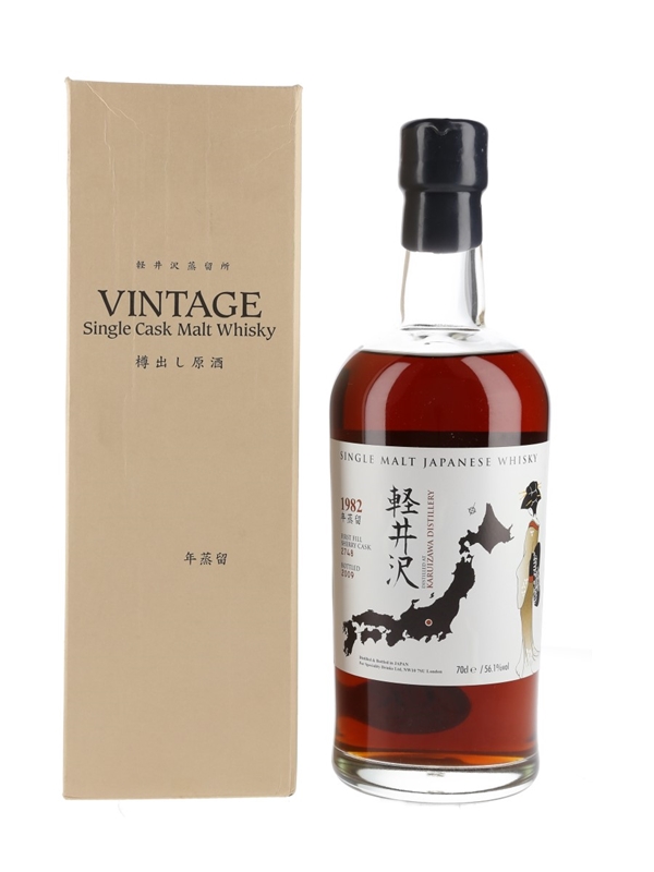 A bottle of Karuizawa 1982 Japanese Whisky, matured in a first-fill sherry casks and bottled at 56.1% ABV in 2009 by Number One Drinks Company Limited for Speciality Drinks Ltd.