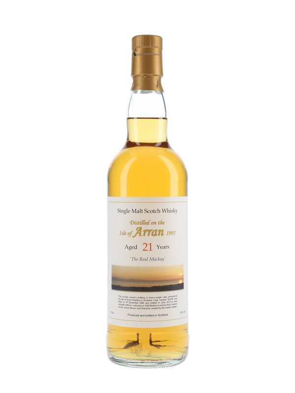 A private cask bottling of The Arran 21 Year Old Single Malt Scotch Whisky. This was distilled on 6 December 1995, matured in a single cask and bottled at a cask strength of 51% ABV in June 2017 under the name The Real Mackay.