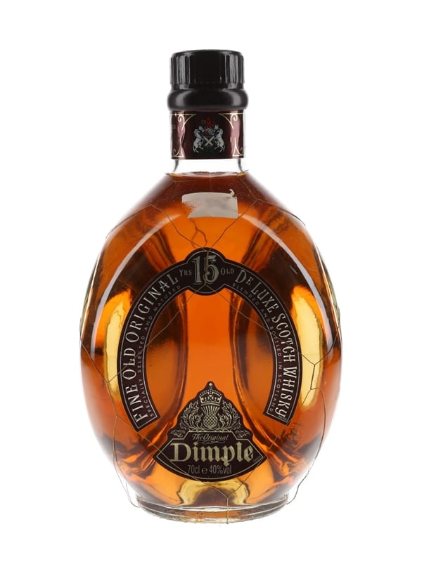 A bottle of Dimple 15 Year Old Fine Old Original De Luxe Scotch Whisky.