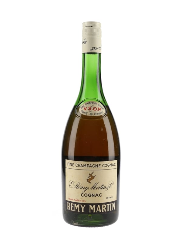 A bottle of Rémy Martin VSOP Fine Champagne Cognac. We estimate this was bottled in the late 1960s to 1970s.