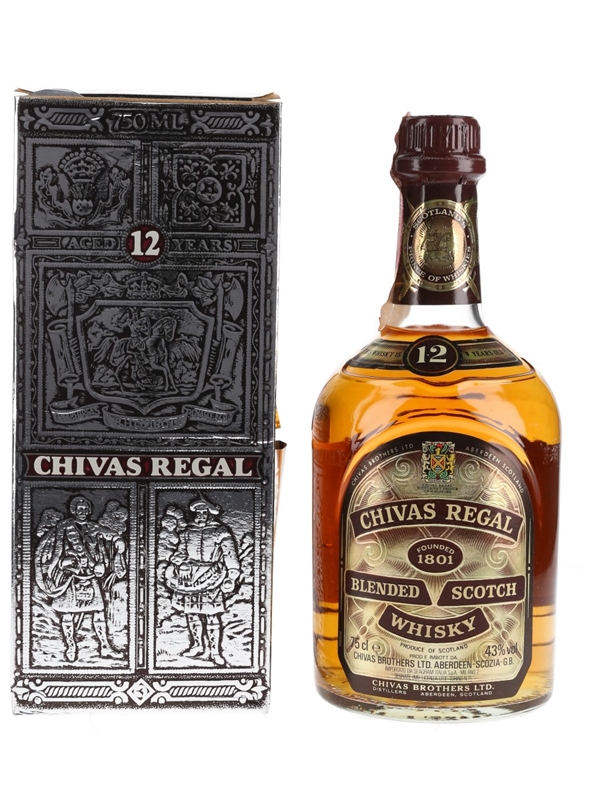 A bottle of Chivas Regal 12 Year Old Blended Scotch Whisky, blended and bottled by Chivas Brothers Ltd. This was bottled for the Italian market and imported by Seagram Italia, we estimate in the 1980s.