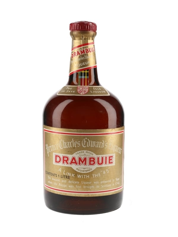 A litre bottle of Drambuie liqueur from the Isle of Skye. We estimate this was bottled in the 1970s.
