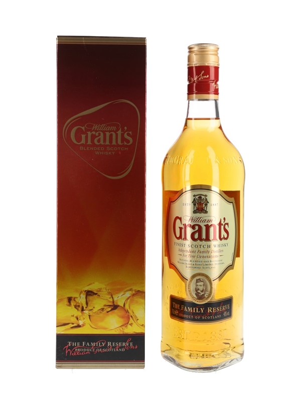 An old presentation bottle of Grant's Family Reserve Finest Scotch Whisky.