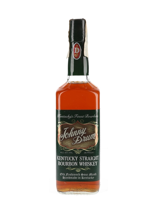 A bottle of Johnny Drum Kentucky Straight Bourbon Whiskey, bottled in Kentucky by Johnny Drum Distilling Company. This was bottled for the Spanish market, we estimate in the 1990s.