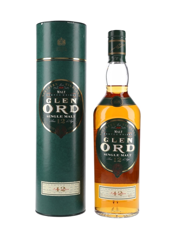 A bottle of Glen Ord 12 Year Old Northern Highland Malt Scotch Whisky, malted and distilled in the Northern Highlands of Scotland. We estimate this was bottled in the 1990s.