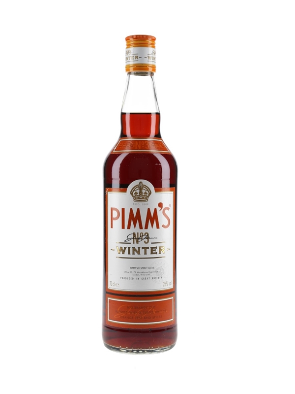 A bottle of Pimm's No.3 Winter, made with the No.3 Brandy Cup and orange zest and spices.