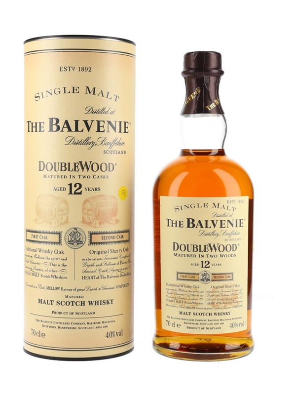 A bottle of The Balvenie 12 Year Old Doublewood, matured first in traditional whisky oak, followed by a period spent in sherry casks. We estimate this was bottled in the 2000s.