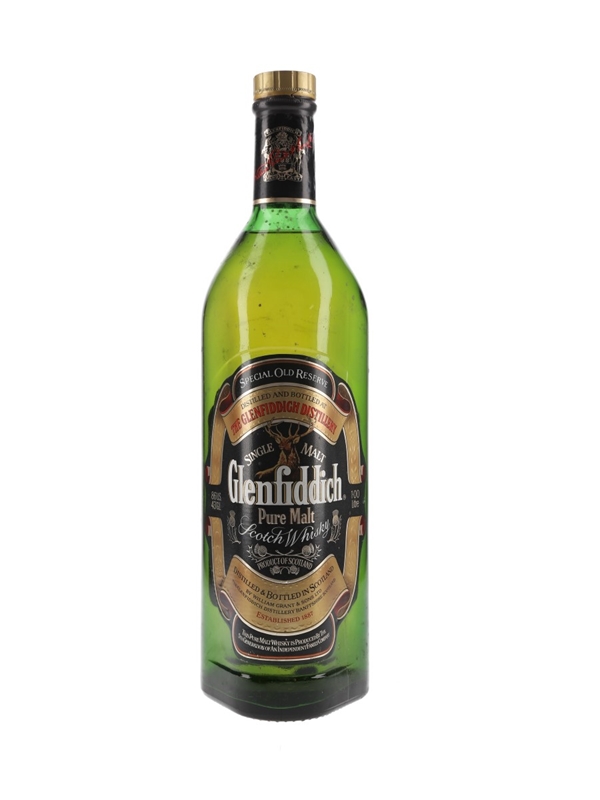 A litre bottle of Glenfiddich Special Old Reserve Single Pure Malt Scotch Whisky, distilled and bottled by William Grant & Sons Ltd. We estimate this was bottled in the 1990s.