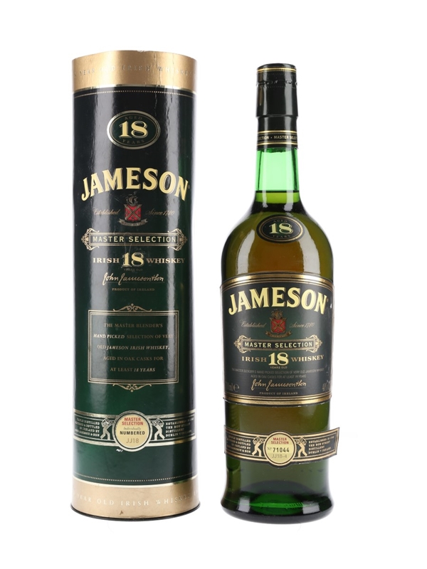A bottle of Jameson 18 Year Old Master Selection Triple Distilled Irish Whiskey.